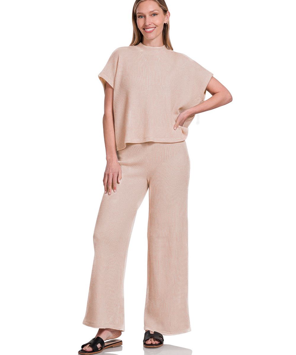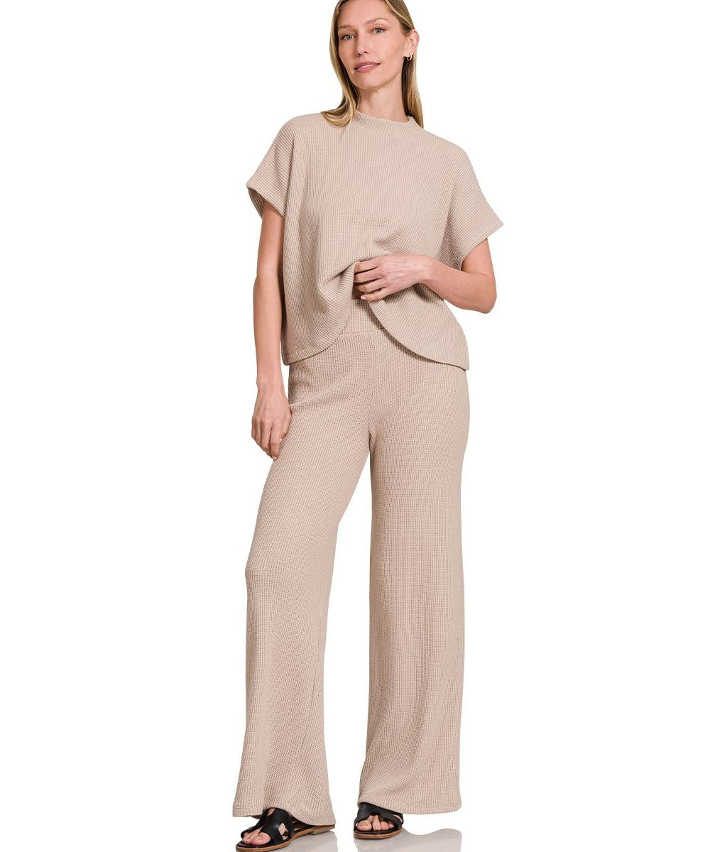 Women's Neutral Color Lounge Set - Light Mocha Comfortable Matching Set - Pants and Short Sleeves Top Lounge Set - Khaki Lounge Wear Set